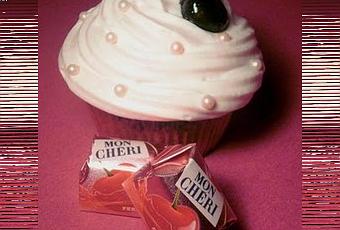 Ce cupcake participe par ailleurs au concours "St valentin rose et gourmande" sur le blog Les délices d'Hélène. J'ai voulu à la fois faire un muffin rose mais gourmand et qui en plus change un peu, j'ai donc eu l'idée d'exploiter la cerise. Puis je me suis dit que les chocolats Mon Chéri, de Ferrero, étaient un grand classique dans le genre et comme j'aime bien mettre quelque chose au coeur du cupcake... Allez hop, l'affaire est entendue.