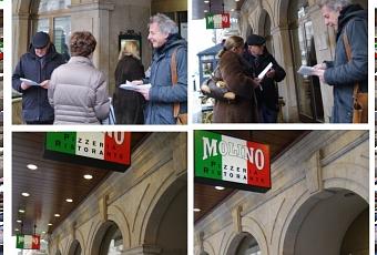 A l’heure du déjeuner les militants ne chôment pas. A midi aujourd’hui il y a eu une distribution de tracts devant l’entrée de la pizzeria Molino à la Place du Molard. Une opération conjointe avec les villes de Fribourg, Zurich et Berne où cette enseigne possède d’autres établissements. On compte 16 restaurants appartenant au même groupe. L’opération a duré une demi-heure et a permis de distribuer des tracts pour dénoncer ce que les organisateurs appellent «la purification ethnique du personnel ». Le mot est fort pour signaler le licenciement de onze salariés à Fribourg et de 16 à Berne. Tous congédiés selon les organisateurs de cette opération coup de poing parce qu’ils sont des travailleurs extra-européens.