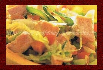 Ajouter le poulet froid à la salade, mélanger et incorporer doucement la marinade.