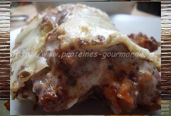 Je devais faire des boulettes de viande chinoise avec une salade de chou chinois et qu’est ce qui me fait de l’oeil depuis que j’ai recu la recette? Les lasagnes de Lily…Alors mon verdict, j’ai fait 2 crepes assez épaisse avec la pate à crepe au protifar que j’ai coupé en 2 pour avoir 3 etages de viande bolognaise. Bon ben bof! Décue un peu mais décue parce que je pense que j’avais tellement pensé a des vrais pates (meme si je savais que ca ne pouvait pas etre ca loool) Donc au final je conseille la recette a ceux qui aiment les crepes au protifar, perso je ne suis pas une fan mais sinon qu’est ce que ca ressemble a de vrais lasagnes une fois cuit ^^ une merveille!