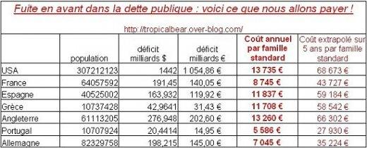 Et encore, nous ne sommes pas le "pire des cas", les états US ou anglais ayant réussi l'exploit de dépasser les 13000 € de déficit annuel par famille standard !