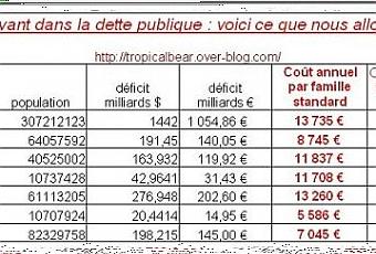 Et encore, nous ne sommes pas le "pire des cas", les états US ou anglais ayant réussi l'exploit de dépasser les 13000 € de déficit annuel par famille standard !
