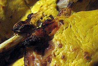 Laisser cuire 15 mn, puis retourner la cuisse et tartiner l'autre face avec le mélange crème-moutarde.