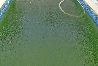 La piscine n'a quasiment pas dégelée depuis le dernier épisode de froid... de fin janvier !