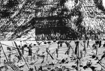 voilà une recherche en commun comme Emma et moi, nous les aimons bien : Lucien , inspiré par nos derniers travaux autour des pavements, nous a fait parvenir cette gravure, que j’ai jointe à mon montage, retravaillé, “répartition dans l’espace 3″.