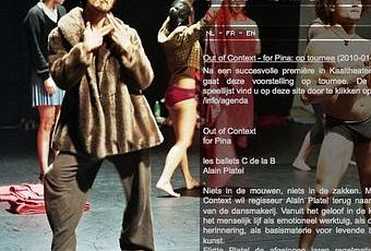 ça ne manque pas d'idées, ça part même dans tous les sens. Entre les deux, Au sens figuré, il est aussi démuni face à la mort de Pina Bausch, dont les motifs de prédilection (désir d'amour, paroles lancées au micro, musiques populaires...) rattrapent sans cesse les danseurs au coin d'un mot ou d'un mouvement sur le plateau vide. Out of Context - For Pina est aussi doublement démuni. Au sens propre, car il n'y a ni costumes (...), ni décor (contrairement aux habitudes de scénographie de Platel), ni orchestre (là aussi contrairement à ces mêmes habitudes). (...) Paradoxalement, cet instinct collectif laisse libre cours à l'originalité de chacun. Des bouffées délirantes, des accès burlesques court-circuitent l'atmosphère de gravité et de deuil de la pièce. Chacun des neuf danseurs trouve sa soupape d'échappement : - (...) avec évidemment surtout surtout les - irruptions déjantées de Rosalba Torres GuerreroOrphelin donc, Out of Context - For Pina n'a d'autre choix que d'approfondir les obsessions de Platel : celles d'un corps fragile, toujours sujet à des déséquilibres, des régressions jusqu'à la débilité. Se flairer, se frotter, s'observer... L'animalité n'est jamais loin chez ce chorégraphe, qui n'oublie pas non plus ses années de travail auprès d'enfants malades mentaux.(...)