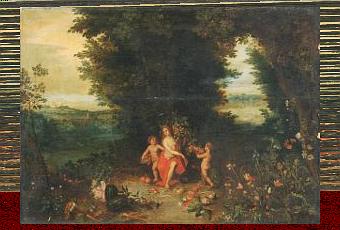 Morlaix en Bretagne qui aura lieu le dimanche 21 février 2010 (catalogue ici).Pour commencer voici un tableau (photographie 1) attribué «à Jean II BRUEGHEL (1601-1678) et son atelier. "Allégorie de la Terre". Huile sur panneau transposée sur toile. 46 x 63 cm. [...] Reprise avec variantes de la composition de Jean BRUEGHEL l'Ancien, conservé à la Galerie Doria à Rome. » (photographie et description Interencheres).