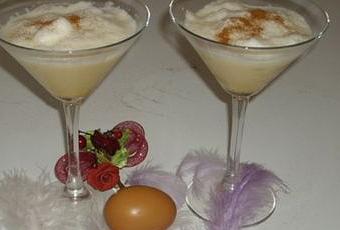 Mixer le tout avec de glace en cubes, sinon mettez à part les glacons, puis montez le blanc d'oeuf en neige avec une pincée de sel et ajoutez la crème au mélange obtenu, Servez dans un verre avec une pincée de noix de muscade.
