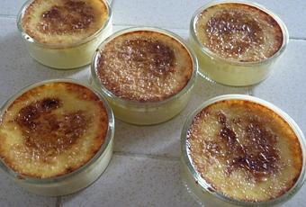 Sortez les ramequins du réfrigérateur, saupoudrez-les d’une couche de sucre au safran et placez sous le gril 2 à 3 mn, juste le temps que le sucre caramélise.