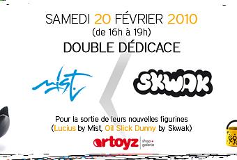 Un beau rendez-vous prévu pour le 20 février à la boutique Artoyz Paris pour les 2 grosses production de l'année. Les deux excellents artistes seront présents pour une série de dédicaces, Mist pour la sortie de son toyz Lucius et Skwak pour ses premiers dunny 8" Oil Slick.