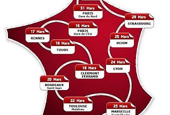 Le Train de l’Egalité des Chances sera sur les rails de l’hexagone du 16 au 31 mars prochains et stationnera successivement dans 12 gares toute une journée : Paris Est, Rennes, Tours, Clermont-Ferrand, Bordeaux, Toulouse, Marseille, Lyon, Dijon, Strasbourg, Lille, Paris Nord.