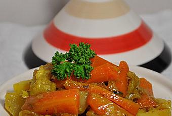 Ce plat de légumes doucement mijotés dans leur robe d'épices accompagnera à merveille les viandes grillées ou rôties comme par exemple un poulet rôti. Vous pouvez y mettre toutes sortes de légumes comme du potiron quelques tronçons de céleri branche, du rutabaga,......etc.