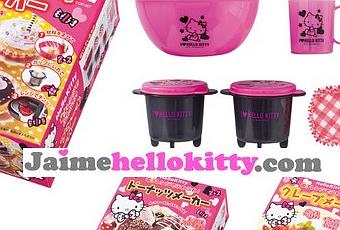 Au Japon les gourmands ont la chance de pouvoir acheter ces sets Hello kitty qui contiennent tout le matériel qui servira à faire le dessert choisi (cupcakes,crêpes ou donuts) ainsi que des recettes.Le tout bien évidement décoré à l'effigie de Kitty comme vous pouvez le voir ci-dessous ! (En vente sur ce site).
