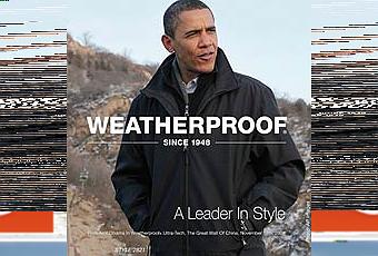 La marque Weatherproof a utilisé a son insu l’image du Président Barack Obama sur une affiche visible à Times Square (New York, USA) avec le slogan « Un dirigeant qui a du style » – et ce sans demander le consentement de la Maison Blanche. La photo a été prise par Charles Dharapak de l’AP (Associated Press).