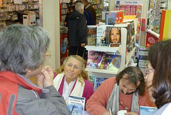 C’était la première sortie de Martine Pruneyrac, auteur de « Demain est le premier jour de ma vie », venue en voisine de son Ariège, pour dédicacer dans les hauts cantons, en compagnie de Benjamin Jugieau et Gérard Raynal, vieux briscards rompus à l’exercice. L’arrivée des vacanciers skieurs a permis à notre débutante de se frotter à son nouveau public. Beau succès pour une première ! On a peut-être assisté à la naissance d’une dédicaceuse performante… À suivre… Au total, une bien belle journée sous le soleil et la neige de Cerdagne. L’accueil toujours aussi agréable des dirigeants est à noter.