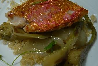 Pour en revenir aux plats, nous en avons goûté plusieurs et j'ai particulièrement apprécié le filet de rouget avec quinoa, fenouil et artichaut. Un mélange de saveurs et de textures délicat et le goût des légumes parfaitement mis en valeur par le chef. Il était là, très gentil et concentré, et a cuisiné en "live".