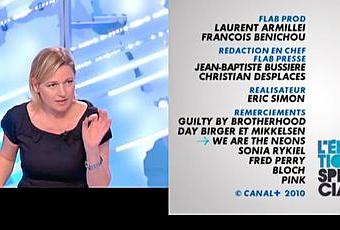 Deux robes Wearetheneons ont été porté dans L'Edition Spéciale de Canal Plus, le 11 et le 15 février 2010 ! Les modèles portés par Anne Elisabeth Lemoine sont disponibles à la vente et/ou à la location chez Paperdolls, en exclusivité à L'Espace des Créateurs, 7 rue Commines 75003