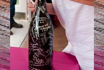 Déposez sur une table plusieurs bouteilles de vin, Champagne,… en fonction du nombre de convives et laissez à leur portée un stylo spécial verre. Ainsi ils signeront vos bouteilles en souvenir de ce grand jour.