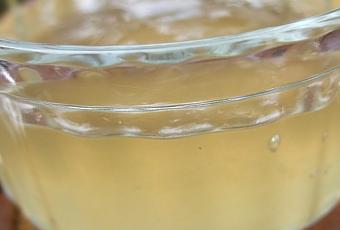 La chair des pommes égouttée ne servira pas pour cette recette, mais ne les jetez pas. Passez-la au moulin à légumes et vous obtiendrez une compote nature et sans sucre, à déguster telle quelle, ou enrichie d'un peu de miel et de cannelle. En ce qui me concerne, je l'ai utilisée pour confectionner un gâteau moelleux aux pommes.