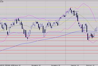 - Vendredi, le dépassement de la résistance des 3750 points est acquis et le marubozu blanc qui apparaît confirme qu'une construction haussière est désormais en place pour rejoindre vraisemblablement la résistance des 3855 points.