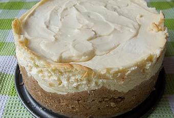 Pour cette recette, j'ai repris la base de mon cheesecake original, mais j'y ai ajouté du yaourt crémeux à la vanille, et je l'ai cuit plus longtemps, au bain-marie (comme celui-ci). Vous constatez que la recette du cheesecake est variable à l'infini!