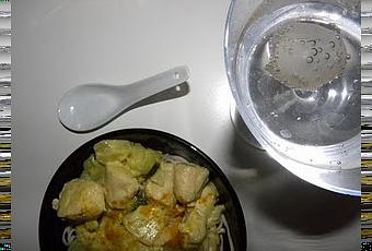 On fait revenir l'oignon coupé dans un fond d'huile et on ajoute les aiguillettes coupées en cubes. Une fois le poulet cuit (mais pas cramé), on y incorpore le gingembre (ou pas hein), un peu de curyy, la courgette coupée en fines tranches, le lait de coco, l'ananas (et un peu de jus éventuellement) et on laisse mijoter tranquillou. Pendant ce temps, les nouilles prennent un bon bain.
