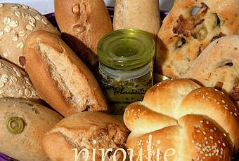 L'année dernière, pour changer des traditionnels paniers sucrés, j'avais préparé des paniers de pains divers dont les recettes figurent sur le blog (pains aux céréales, aux noix, aux olives, hallot, fougasse etc... : CLIC) accompagné de confiture maison au kiwi.