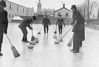 J'adore voir les mecs passer la serpillière, la balayette, enfin ce que vous voudrez. J'aime quand ça brille et quand ils s'y mettent à trois pour arriver à ce résultat, on ne peut que se féliciter du génie humain qui a aboutit à l'invention des Jeux Olympiques mais particulièrement de cette épreuve indispensable qu'est le curling.image : curlinguistes, Ontario, 1909.