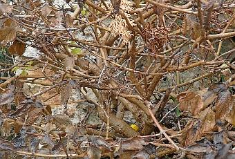 Seuls les pieds les mieux protégés ont pu ętre épargnés... D'ci le mois d'avril, je verrais les éventuelles pousses qui auront pu ętre épargnées en effectuant une taille sévčre. A défaut, j'arracherais les souches des pieds morts et les remplacerais par une plante moins gélive au męme endroit !