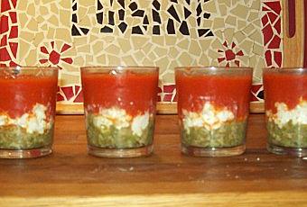 5/ dans un verre mettre une couche d'haricot, une couche de bûche de chèvre et une couche de tomate
