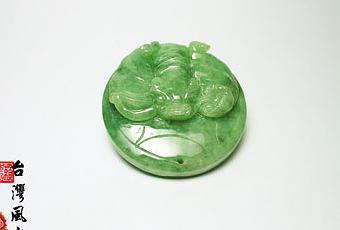 La pièce du Bonheur (福錢) plus précisément (福在眼前) le Bonheur sous les yeux, tel est le symbole de ce jade avec une chauve-souris sur une pièce de monnaie.