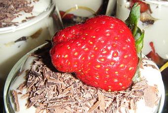 Saupoudrez de chocolat râpé puis décorez avec une fraise .