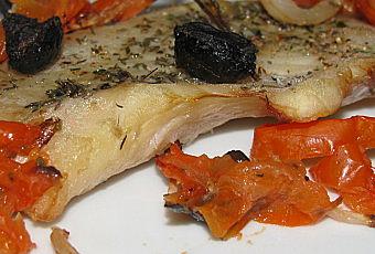 - quelques olives noires coupées en deux