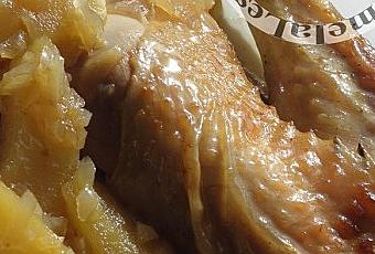 Disposez le poulet au fond de votre cocotte, ajouter le cidre, sel, poivre et les oignons très finement.