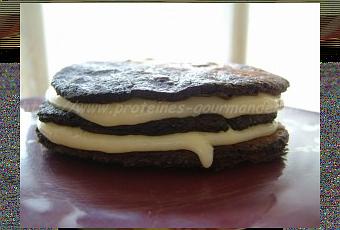 Superposer les biscuits avec la creme patissiere. Ca va un peu dégouliner de partout mais c’est pas grave ^^ Le top du top serait un cercle ou carré patissier qui contiendrait la creme sans débordement.