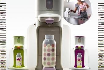 On peut préparer le bib’ avec bébé dans un bras et le biberon de l’autre. Comment ? On met la poudre dans le bib’ et l’eau minérale dans le compartiment du haut. On appuie sur le bouton de chauffe, on enclenche la machine et l’eau sort en moins de 15 secondes (mon impression) à 37°C. Fini les pleurs de bébé – ou moins longtemps. Fini le test dans le creux du poignet pour savoir si la température est bonne et dans le cas contraire, devoir remettre le bib’ en chauffe ou dans une carafe pour qu’il refroidisse.