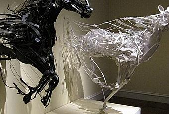 Sayaka Ganz passe le recyclage du registre de l'écologie à celui de l'art. De ses doigts de fée, cette artiste japonaise installée aux Etats-Unis crée à l'aide de vieux ustensiles de cuisine, des animaux d'un réalisme incroyable. Chevaux au galop, chien, chats, piranhas... Sayaka Ganz sculpte sa passion des animaux et parvient à les rendre vivants tant leurs mouvements se dégagent de ses œuvres.