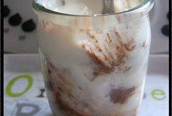 Verser ce mélange sur le chocolat, dans les pots de yaourt en verre. Ne pas mettre les couvercles.