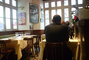 Chez La Vieille. 3 Miam sur 5. Table testée en janvier 2010.Cette institution traverse les décennies sans coup férir. Les changements de chefs ou de propriétaires n’ont pour le moment aucune incidence sur cette adresse où le temps semble s’être arrêté à l’époque où les Halles étaient considérées comme le ventre de Paris. La caisse enregistreuse n’a pas d’âge, le formica rappelle les années 60 et les photos de personnalités entourant l’ancienne maîtresse de maison sont jaunies par le temps. Si la Vieille revient sur le devant de la scène, c’est en raison de l’arrivée d’un nouveau chef. Pas n’importe lequel. Michel Del Burgo, un bourlingueur itinérant passé par le Bristol, Taillevent, l’Orangerie, le Sud de la France et la Russie. Déjà quelques grincheux s’offusquent, se lamentent en nous sortant le sempiternel « c’était mieux avant avec les terrines que l’on passait de table en table et le fameux chariot des desserts ». Oui mais voilà, c’était avant. Aujourd’hui, Del Burgo n’a semble t-il pas envie de révolutionner la maison. Juste imprimer sa patte sans que le contraste lieu de mémoire, assiettes épurées ne soit trop décalé. Cela se traduit à l’heure du déjeuner par un velouté de chou-fleur étrangement accompagné de deux toasts au tartare de saumon qui n’apportent pas grand-chose. Le velouté se suffit à lui-même. La daube de bœuf servie en cocotte avec carottes et gratin de macaronis se la joue hyper classique quant aux deux petites tartelettes au chocolat et noix de pécan accompagnées d’une onctueuse crème glacée à la vanille, elle renouvelle délicatement le genre.