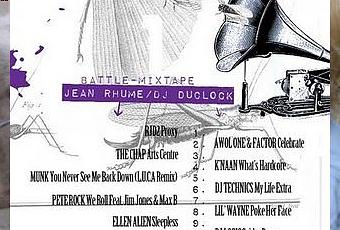 Rha, putain, j'avais écrit tout un texte pour vous présenter la CHOSE et paf !, la plante. Donc vous vous contenterez du pochon et du lien pour voir ce que c'est ici et du lien pour télécharger gratos ici. Il vous suffit de savoir que c'est la Battle Mixtape DJ Duclock/JeanRhume et qu'on en a torturés pour moins que ça, et que ces deux enfants de Satan sont la honte du forum Poin-Poin.