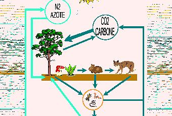 - il y a une différence entre flux -d’énergie- et cycles -biogéochimiques de la matière ; la première est perdue pour la biosphère et le soleil doit nous en apporter en continue une nouvelle, soleil qui se vide donc peu à peu de son énergie ; la seconde, la matière, fait une boucle permanente tant que durera le premier.