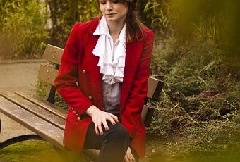 Slim uniqlo, bottes vintage, blouse vintage, blazer rouge vintage