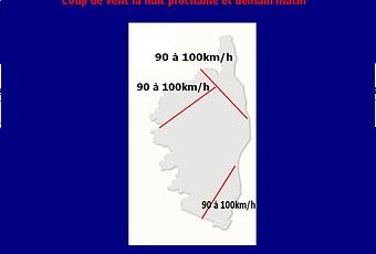 Les endroits exposé au coup de vent de la nuit prochaine et demain matin sont à peu près les mêmes qu'hier. Le Cap-Corse, la Balagne, la région Bastiaise, et les crêtes. Les rafales dépasseront donc les 100km/h sur toutes ces zones entre cette nuit 2h et demain matin 10h. Passé ce créneau, les rafales commenceront à faiblir, pour complètement s'estomper en milieu de journée de demain. Côté ciel, la journée de demain permettra au soleil de briller malgré le fort vent du début de journée. Les températures seront encore douces.
