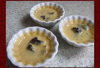 Faites chauffez le lait avec la poudre de vanille puis laissez infuser 15 minutes. Versez-le ensuite sur les oeufs. Déposez quelques cerises au fond des mini moules et versez l'appareil. Faites cuire au bain marie 45 minutes. Laissez refroidir les crèmes et mettez-les au frais.