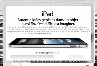 C’est en se baladant sur le site internet de la FNAC que l’on peut voir une page spécialement dédiée à la présentation de l’iPad, la nouvelle tablette tactile d’apple.