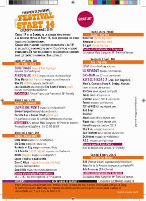 FESTIVAL START 14Le Festival qui laisse la possibilité aux Jeunes Parisiens du 14ème de s'exprimer artistiquement.