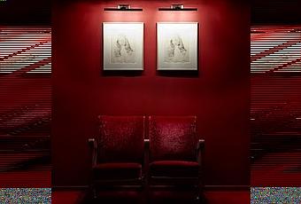 Il y a deux manières de voyager dans cette installation énigmatique où l’artiste entend matérialiser les arcanes de la pensée. Soit en se laissant porter par ses émotions soit en cherchant à comprendre les inférences et décrypter les codes. Les deux façons ne sont pas antinomiques. J'ai suivi la première voie mais pour vous j'emprunterai la seconde, ne serait-ce que pour continuer de vous inciter à aller vivre l'expérience sur place.Dès les premiers pas dans le vestibule rouge, deux fauteuils de théâtre invitent à s'installer. Au mur deux portraits de femme (Femme tatouée) interpellent par leur ressemblance. On aurait envie de chercher les 8 erreurs. La seule issue possible est de poursuivre par Et in Arcadia Ego où j'ai franchi le rideau noir ouvrant sur le Cabinet de la nuit.