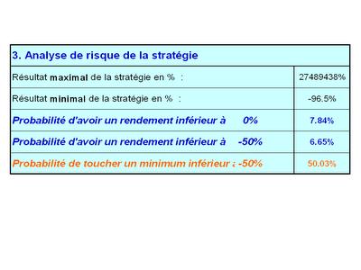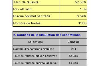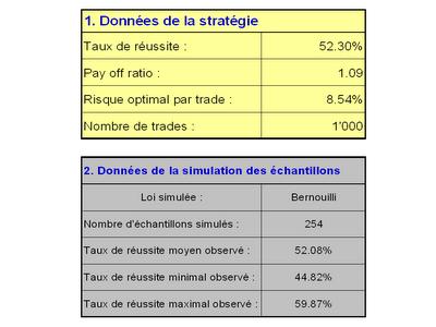 Les paramêtres étaient les suivants :- taux de réussite : 52.3%- pay off ratio : 1.08- nombre de trades : 1'000