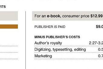 Très intéressant billet publié hier par le New York Times qui revient sur les différents coûts dans la production des livres (papier et version numérique) et les profits générés en fonction des prix de vente. On sait que les éditeurs sont en train de batailler ferme pour revoir le modèle de prix de vente à 9,99$ imposé par Amazon avec un prix plus élevé à 12,99$ au minimum. Ci-dessus,
