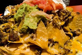 Si, en regardant, cette photo, vous vous dites « Voilà une laide assiette. », bravo. Vous n'êtes pas aveugles. Je pense que je suis trop bon photographe parce que l'assiette avait l'air encore plus décourageante sur le coup: la salade flétrie, les tortillas tièdes et secs. Si vous n'aviez pas compris, c'est un taco et un quesadilla (8$ et quelques sous). Le taco est composé du même poulet sec avec des tomates, des oignons et une tranche d'avocat gluant. Frémissez-vous de fringale après cette description? Non. Le tortilla est caoutchouteux, moche. Le quesadilla substitue les tomates et les oignons pour quelques grammes de fromage et une demi-once de guacamole: merci! Ça goûte sensiblement la même chose: la désolation profonde.Mes descriptions exagèrent un peu le démérite du repas, mais pas trop. C'est rare que je mange pour ensuite tout à fait regretter ce que je viens de mettre dans ma bouche, mais c'est arrivé ce jour-là. C'était ma seconde visite en quelques semaines, question de confirmer quelques unes de mes observations pour une critique, et ce sera ma dernière avant longtemps.
